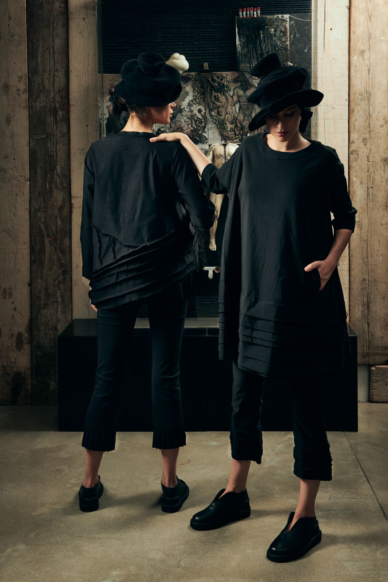 Un pantalone, un abito…infilare nel trolley, schekerare e alternare in versione TADASHI. Spirito di una donna interpretato da un marchio. Ritratto di una donna “libera”. L’istante creativo.